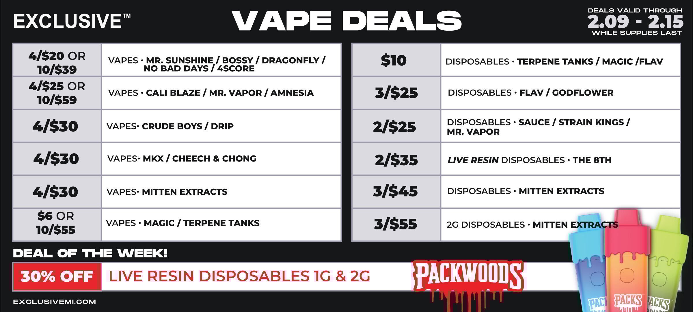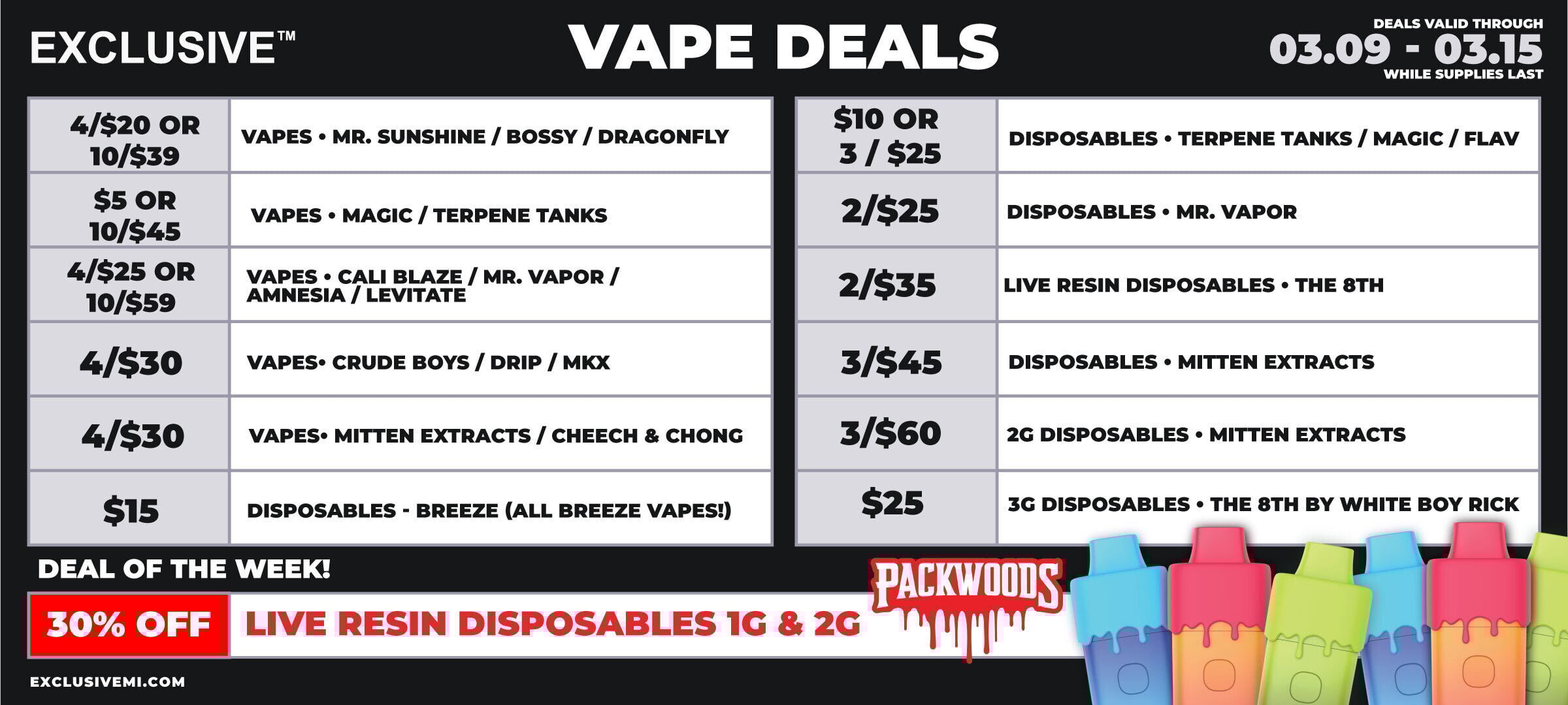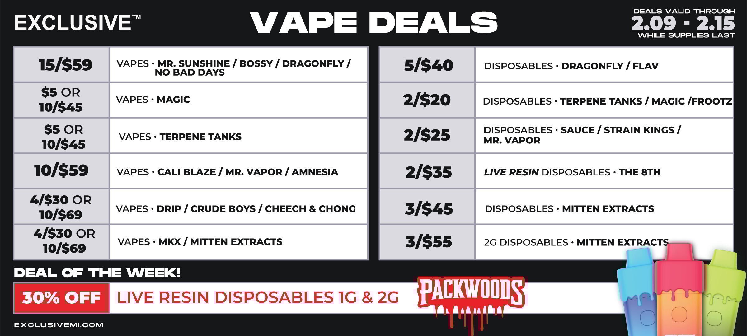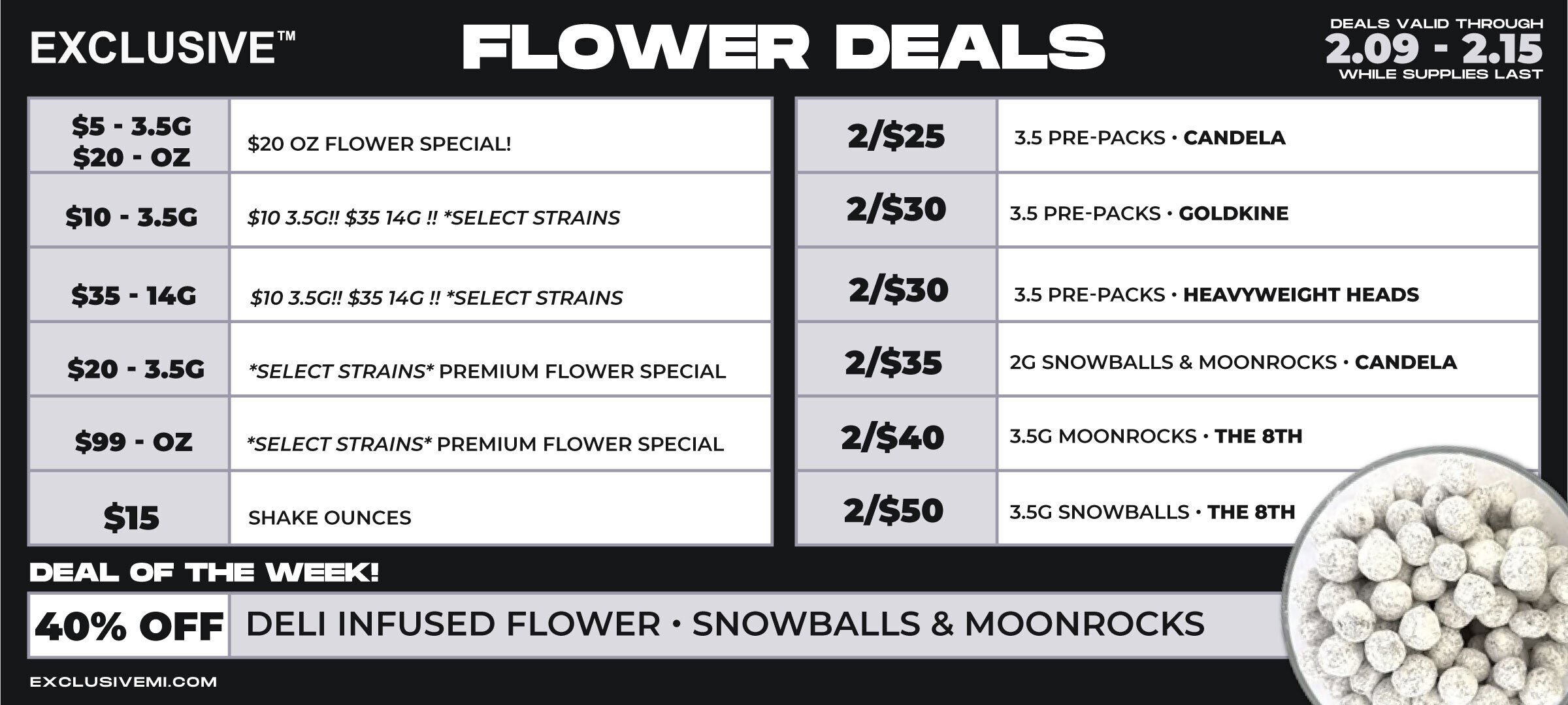 Exclusive’s Michigan marijuana dispensaries offer unique, high-quality products, many of which we’ve created and produced ourselves! As a vertically-integrated operation, we control every step of the process—from seed to sale. When you shop Exclusive’s popular products, you know that you’re buying meticulously grown and produced cannabis products that have been lab-tested for safety and approved for your use.