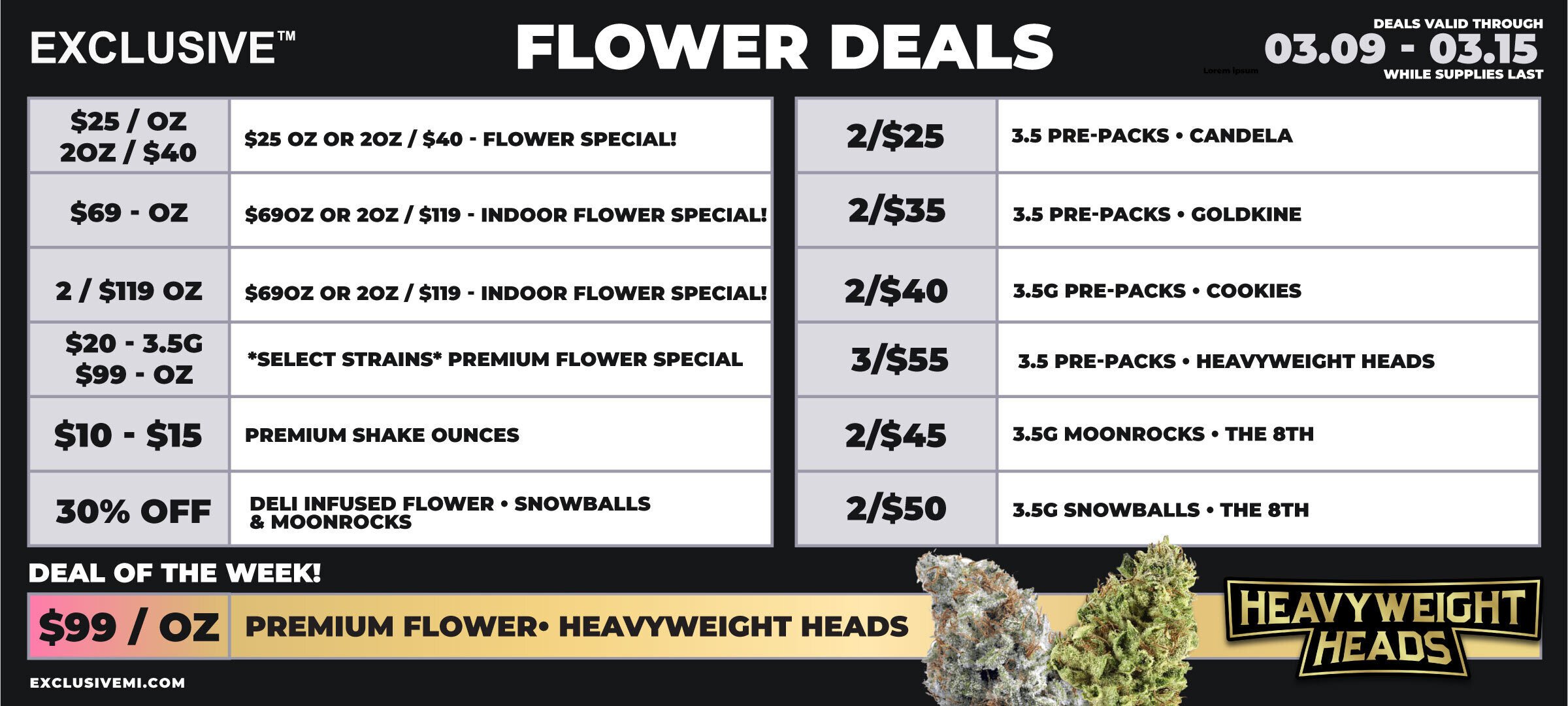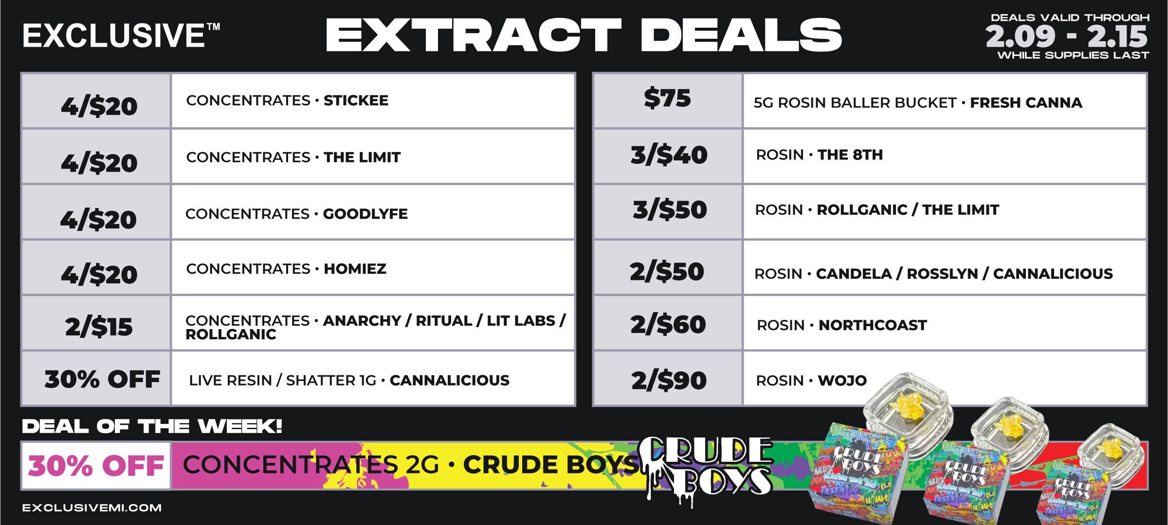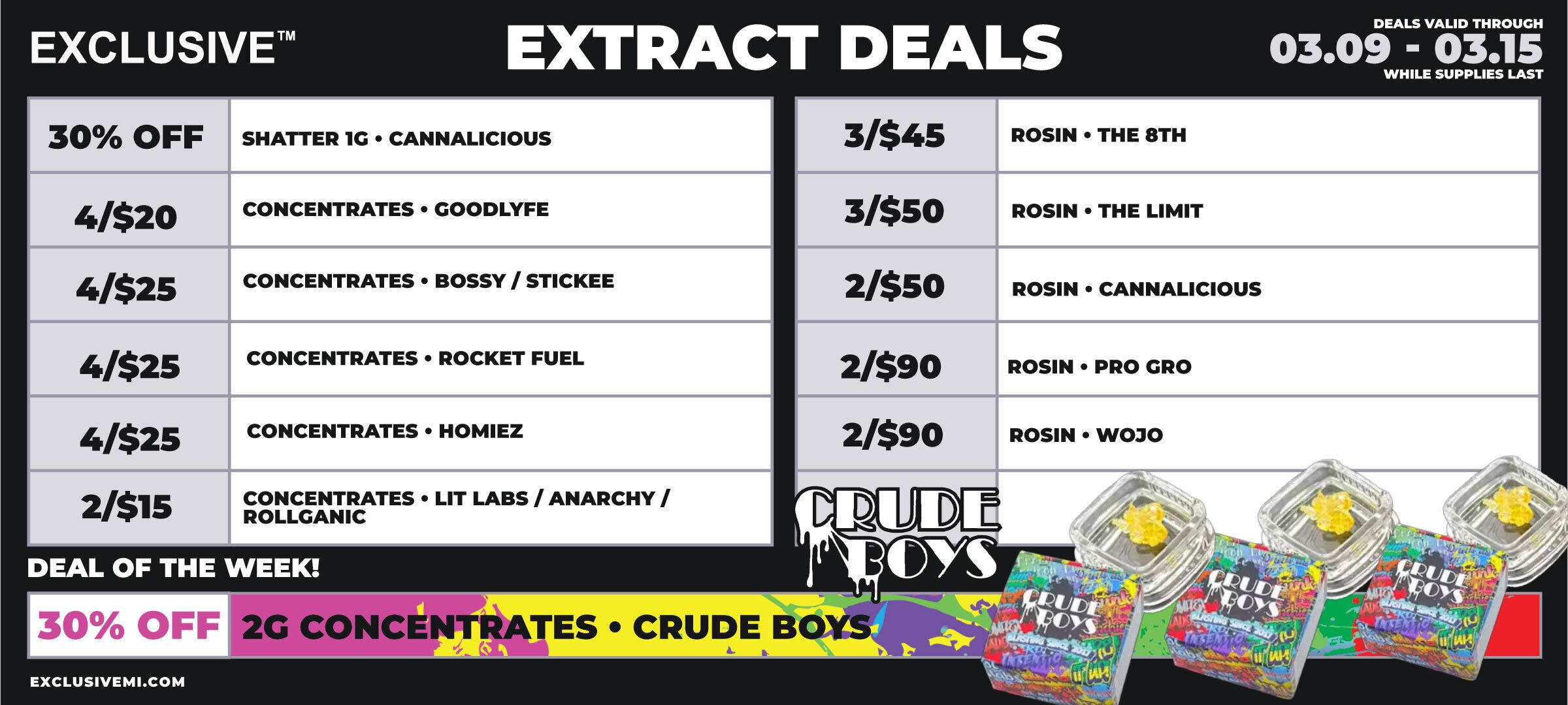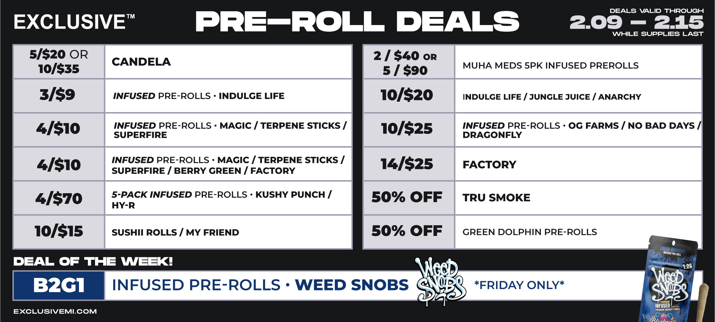 Exclusive’s Michigan marijuana dispensaries offer unique, high-quality products, many of which we’ve created and produced ourselves! As a vertically-integrated operation, we control every step of the process—from seed to sale. When you shop Exclusive’s popular products, you know that you’re buying meticulously grown and produced cannabis products that have been lab-tested for safety and approved for your use.