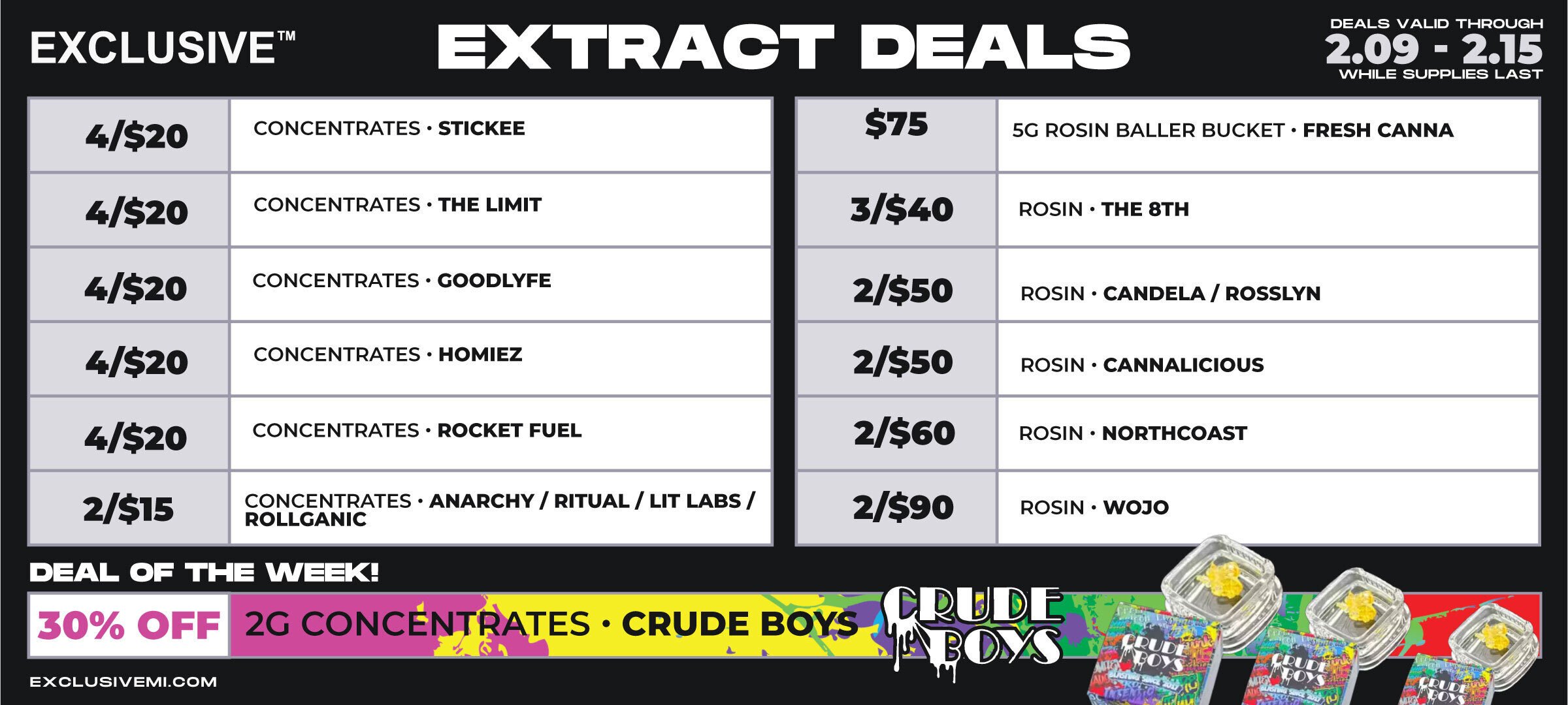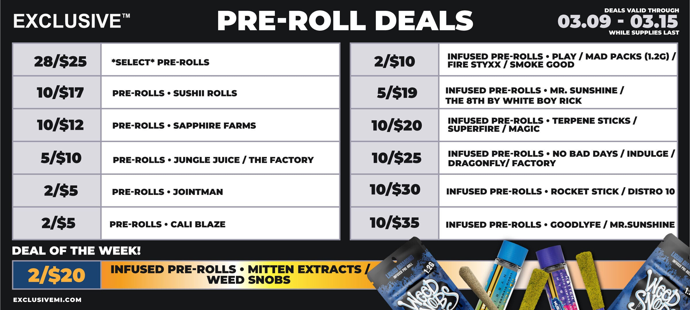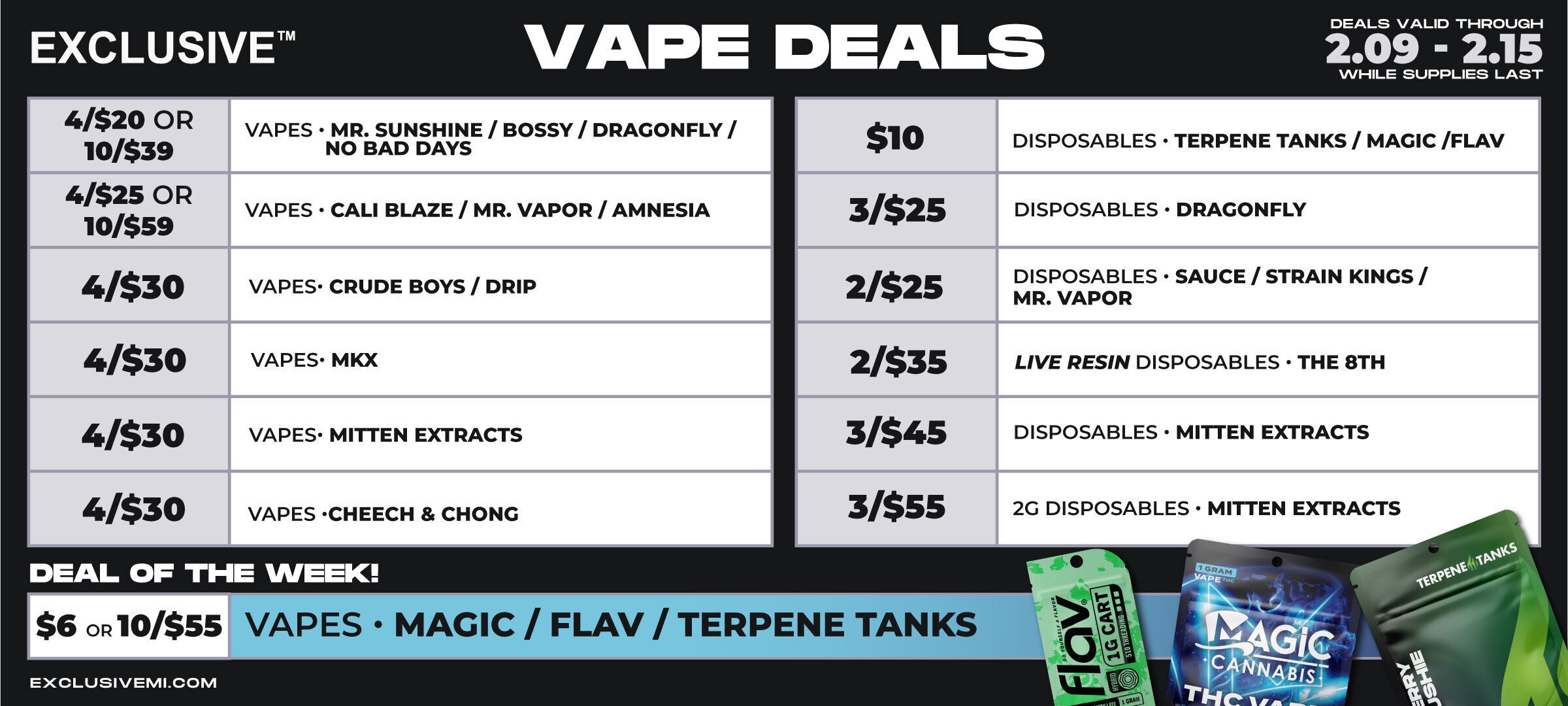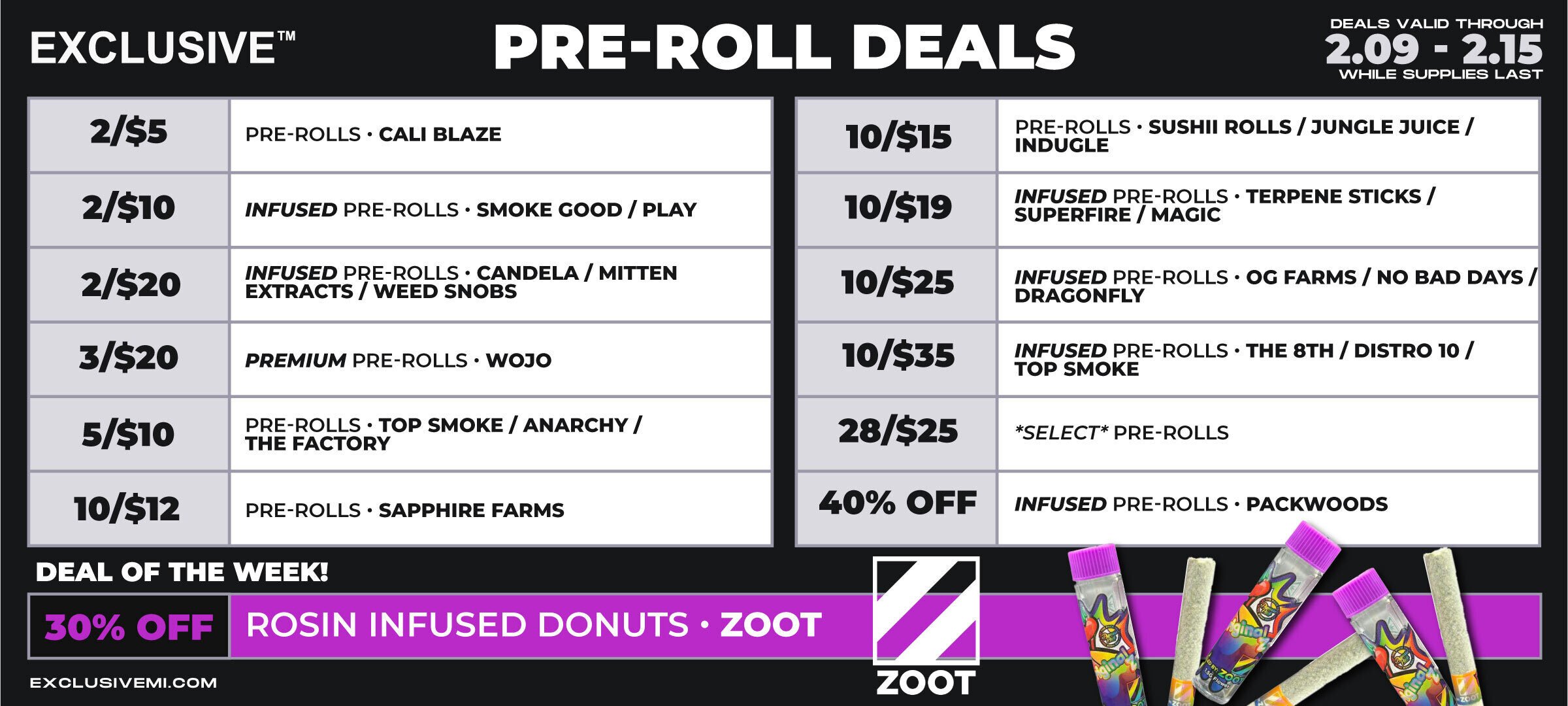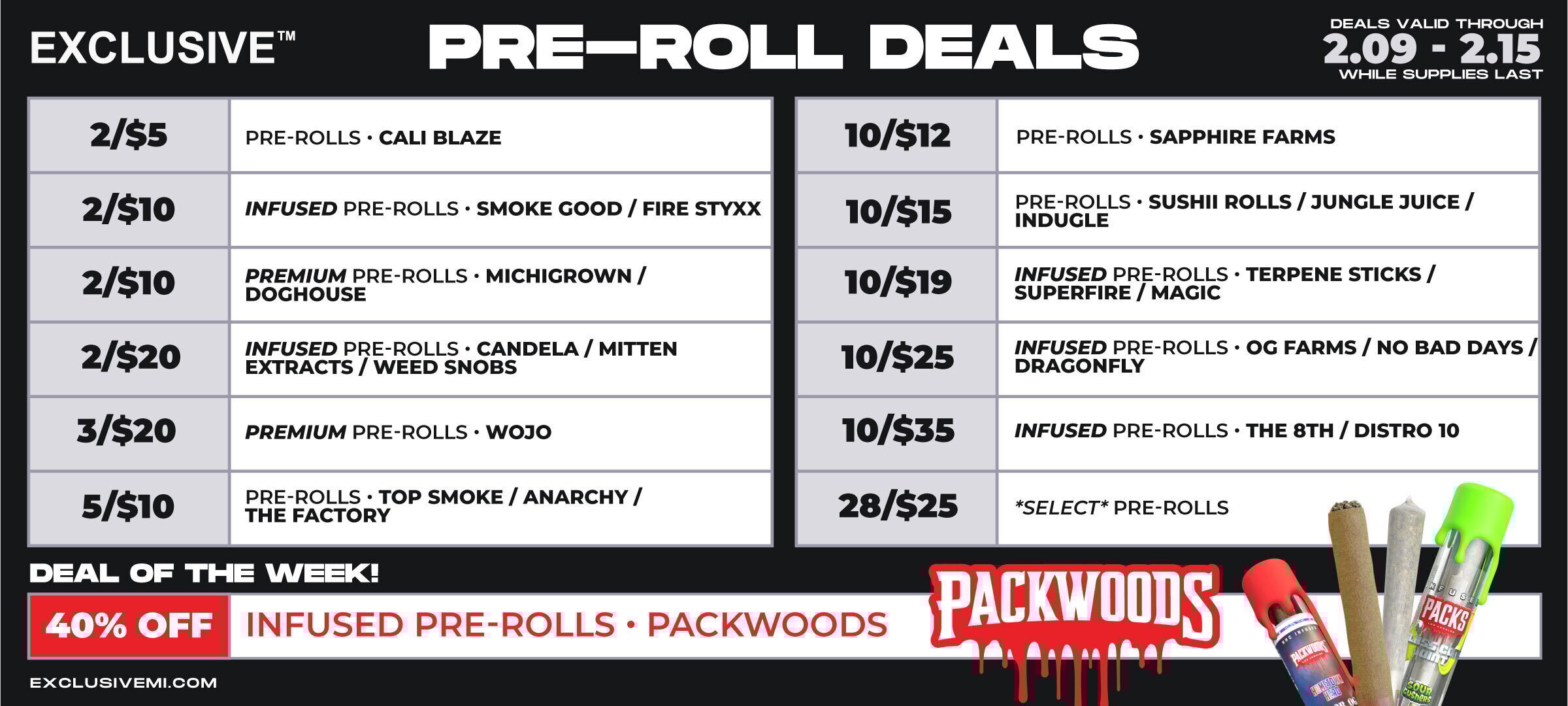 Exclusive’s Michigan marijuana dispensaries offer unique, high-quality products, many of which we’ve created and produced ourselves! As a vertically-integrated operation, we control every step of the process—from seed to sale. When you shop Exclusive’s popular products, you know that you’re buying meticulously grown and produced cannabis products that have been lab-tested for safety and approved for your use.
