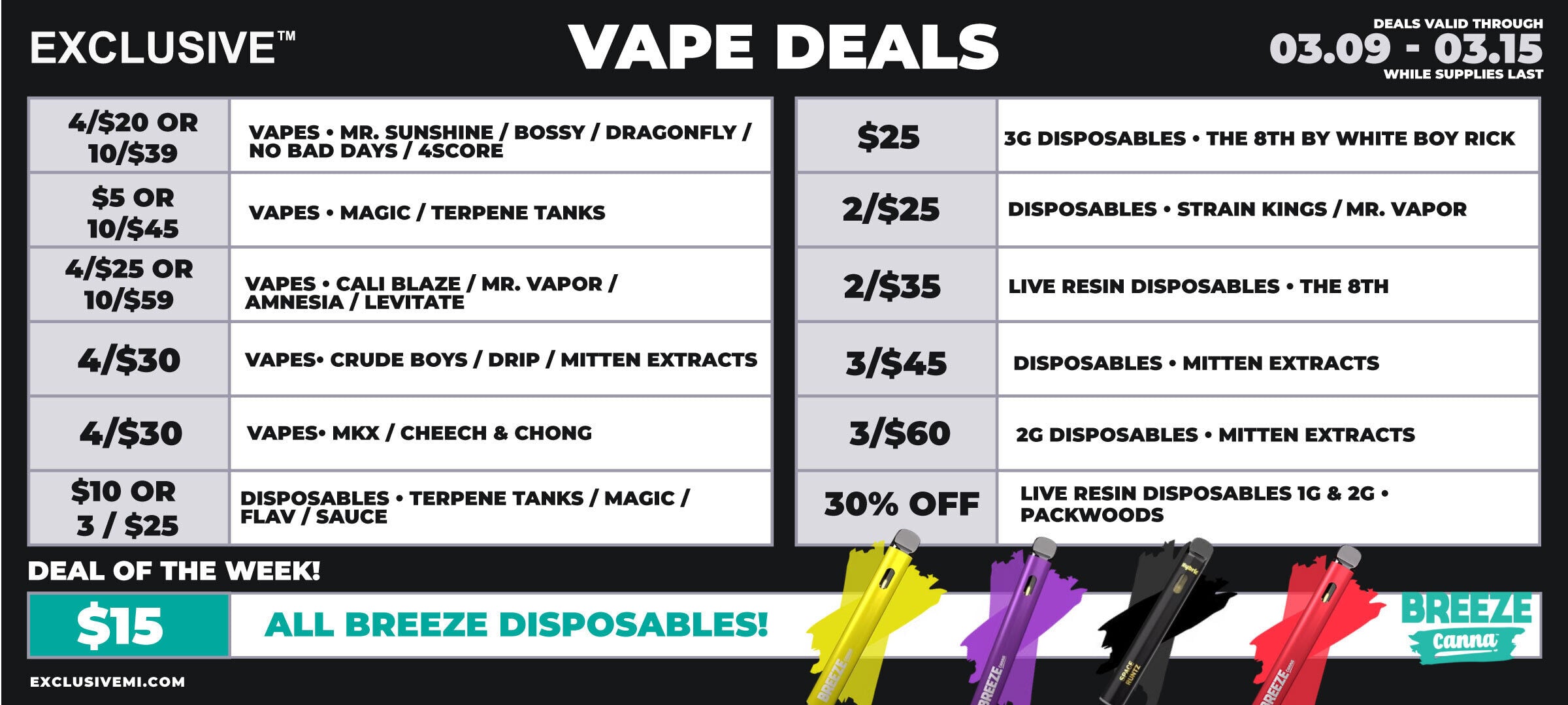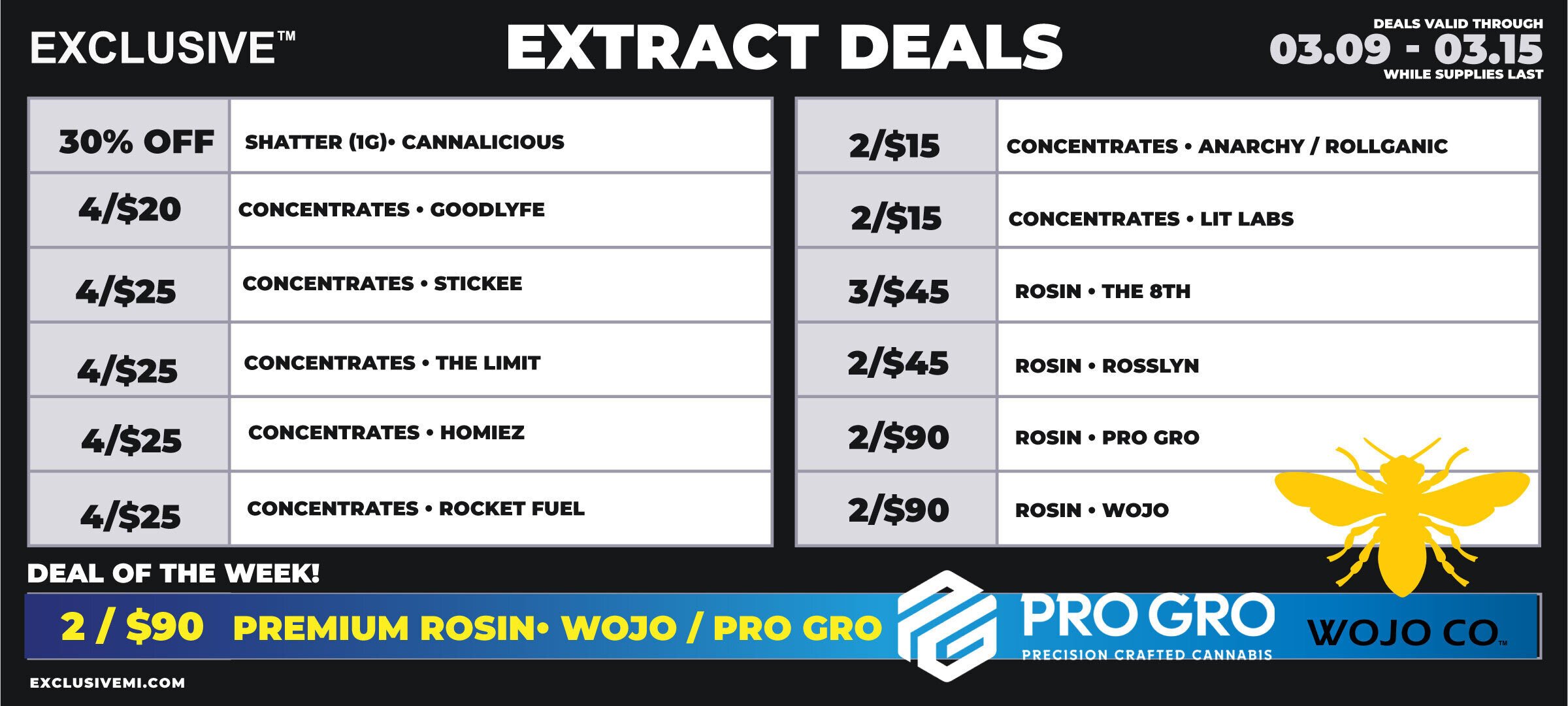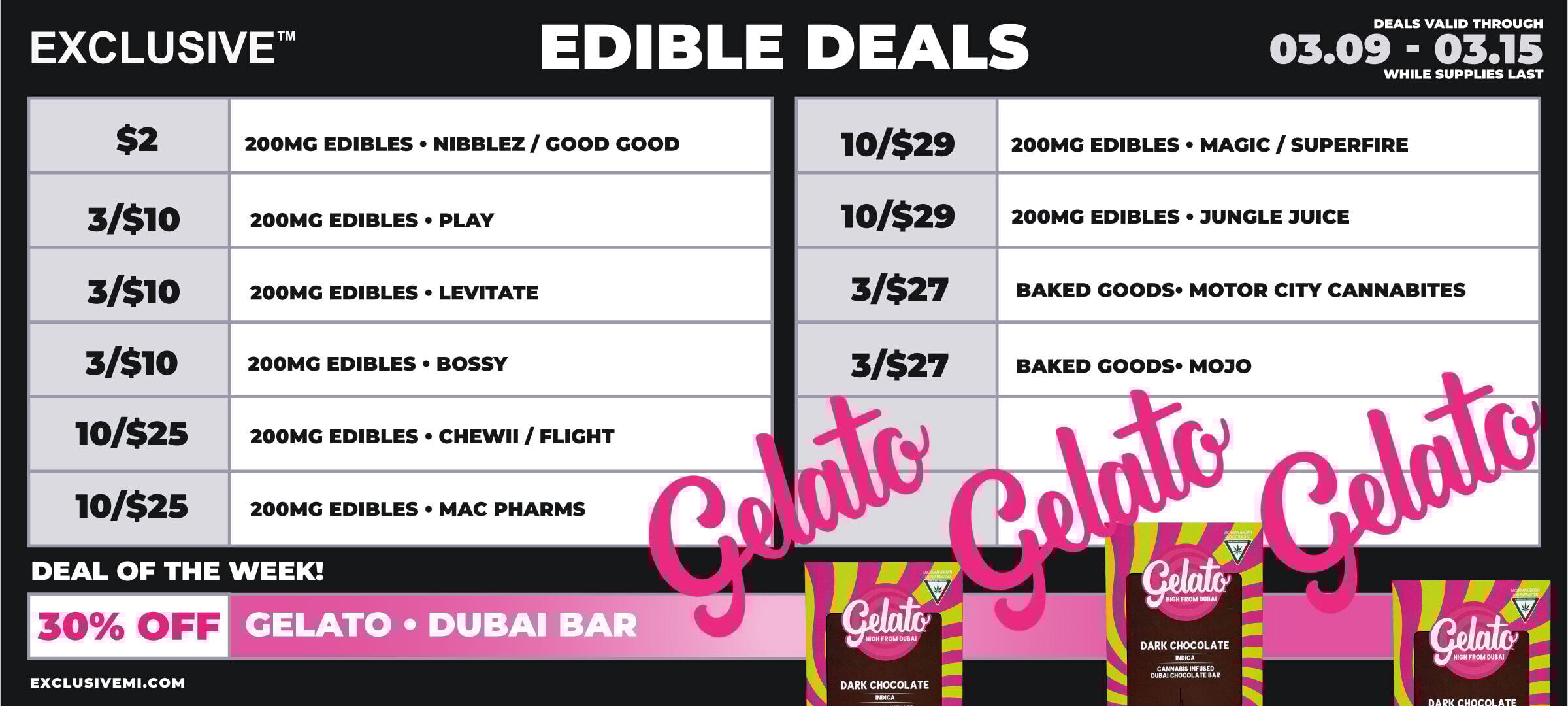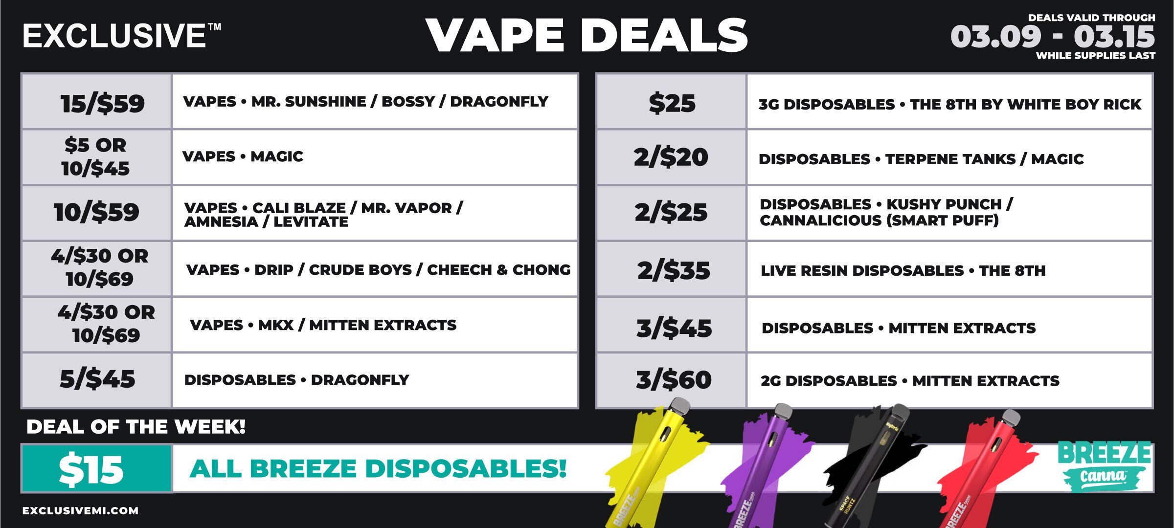 Exclusive’s Michigan marijuana dispensaries offer unique, high-quality products, many of which we’ve created and produced ourselves! As a vertically-integrated operation, we control every step of the process—from seed to sale. When you shop Exclusive’s popular products, you know that you’re buying meticulously grown and produced cannabis products that have been lab-tested for safety and approved for your use.