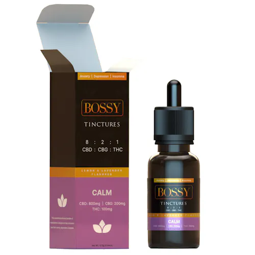 Bossy Drops offers a Calm option with a near 8 CBD:2 CBG:1 THC ratio! Flavored with lemon & lavender oil, this combination is designed to help consumers treat their anxiety, depression, & insomnia.