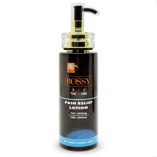 Bossy Pain Relief 1:1 2000mg THC/CBD Butt Naked Tropical Scented Pump Lotion Rec