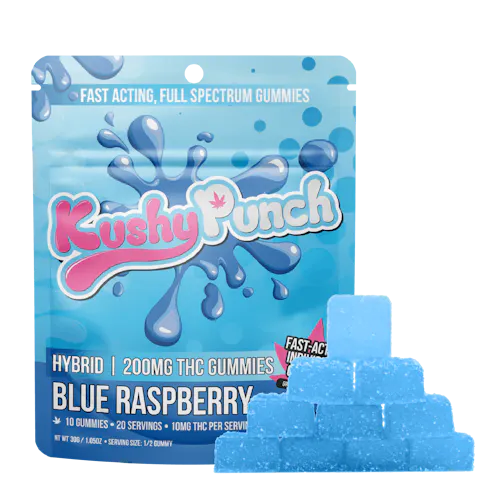Kushy Punch Hybrid Blue Raspberry Individual Gummies 200mg Rec