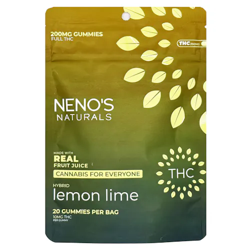 A zesty and refreshing way to experience the benefits of cannabinoids. Each gummy is infused with a bright lemon-lime flavor, delivering a tangy burst of citrus with every bite. With a total of 200mg of THC, these gummies are perfect for those looking for a potent and enjoyable edible experience. Whether you're seeking relaxation, relief, or simply a delicious treat, Neno's Naturals Lemon Lime Gummies offer a flavorful and effective option for your wellness routine.