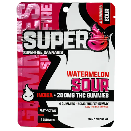 Experience the true Superfire! Bursting with flavor, these all new sour gummies are available in a 4pk of 50mg fast-acting gummies, a total of 200mg of THC!