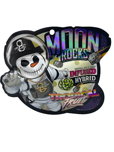 Tropical Fruit Moon Rocks are a premium cannabis product made by infusing high-quality flower with Live Resin concentrate and coating it with kief, offering an intensely potent and flavorful experience. These Moon Rocks deliver a sweet, tropical fruit flavor, with hints of mango, pineapple, and citrus that create a mouthwatering, exotic taste with every hit.