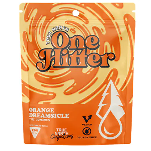 Experience the creamy, citrusy delight of Orange Dreamsicle in True North's 200mg One Hitter gummy. This bold single-piece gummy delivers a smooth blend of sweet orange and vanilla notes for a nostalgic twist on potency. Made with Michigan-sourced beet sugar and natural flavors, this vegan, gluten-free treat offers a rich, flavorful journey in every bite.