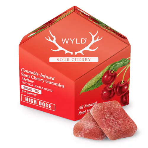Wyld's Sour Cherry Indica Enhanced gummies are perfect for unwinding after life's great adventures. Made with real fruit and botanical terpenes, these gummies pack a tart twist. It's a little like a hammock for your inner thoughts.